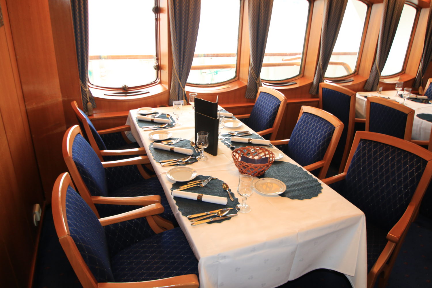 Da alle Kabinen, bedingt durch die Bauweise des Schiffes recht klein sind, sollten diese ausschließlich als Domizil zum Schlafen und Umziehen angesehen werden. Bei den Kabinen ohne WC und Bad befinden sich genug Duschen und WCs, die gut sauber gehalten werden, auf dem jeweiligen Deck. Wenn sich kein Bad in der Kabine befindet, kompensiert das auch Kabinengrößen in den Kategorien „D“ und „I“, es gibt Kabinen mit 2 Ober und zwei Unterbetten; sollten Sie eine solche Kabine erhalten, kann das obere Bett als zusätzliche Ablagefläche genutzt werden.
